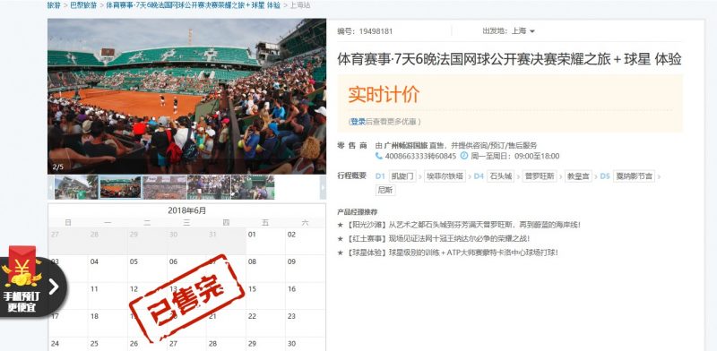 The French Open has no WeChat account, but the event is still popular with Chinese fans, and the selling point for several tour packages on Ctrip. A RMB 41,256 (US$6,515), 7-day package includes tickets to both the men’s and women’s finals, plus travel to Nice and Monaco, as well as Paris and its surrounding areas. Much cheaper at RMB 22,158 (US$3,499), the “French Open for Nadal Fans” package doesn’t actually include tickets to enter the stadium, but rather brings Chinese tennis fans to the grounds of the event during the semi-finals and finals to enjoy the atmosphere and watch the matches on outside screens. The package also includes a visit to the Eiffel Tower and other Parisian site-seeing, shopping, and a trip to a lavender farm.