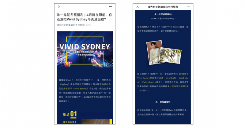 Visit NSW promoted the Vivid Sydney festival with a giveaway of photos signed by actor Zhu Yilong