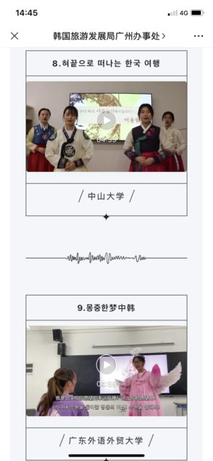 To celebrate 30 years of diplomatic relations between South Korea and the PRC, the tourism board ran a spoken-Korean competition, where contestants recorded videos of themselves speaking Korean, and WeChat viewers got to vote for their top choice.