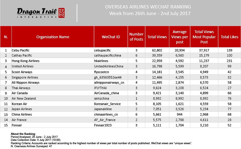 Ranking criteria: Accounts are ranked according to the highest number of views per total number of posts published. WeChat views are “unique views”.