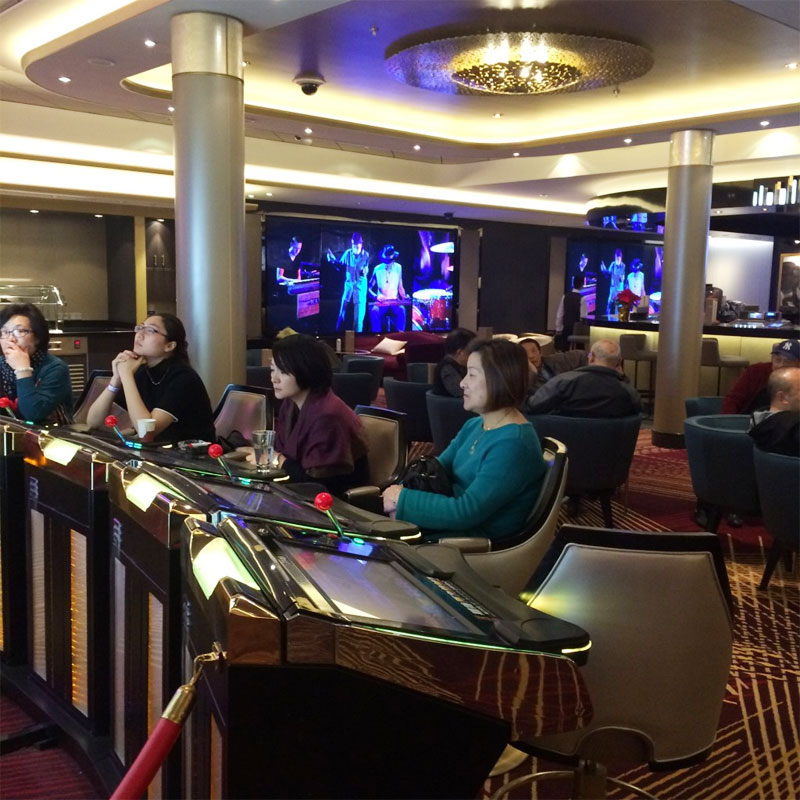 I only walked through it briefly, but the on-board casino – which opened as soon as we entered international waters and closed when we left them, as gambling is forbidden in China – was another popular entertainment spot, with women at the slot machines and men at the blackjack tables.