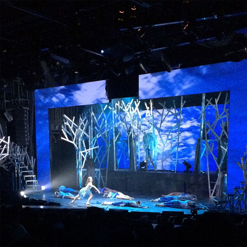 Like an actual casino, Norwegian Joy also offers plenty of live entertainment, with dance shows and magicians in an enormous theater. On the night we went, the show was a mix of magic, dance and acrobatics, with glittering costumes and dramatic music. Ballerinas wearing aquamarine flippers were hoisted high above the stage on acrobatic silks, while the music went bloop bloop bloop bloop in an underwater serenade. Then yellow-clad dancers took to trapezes, sparkly men leapt across the stage fanning fake snow that fell faintly over the audience, spiky ice queens rose from stages set within the audience, and the show was over.