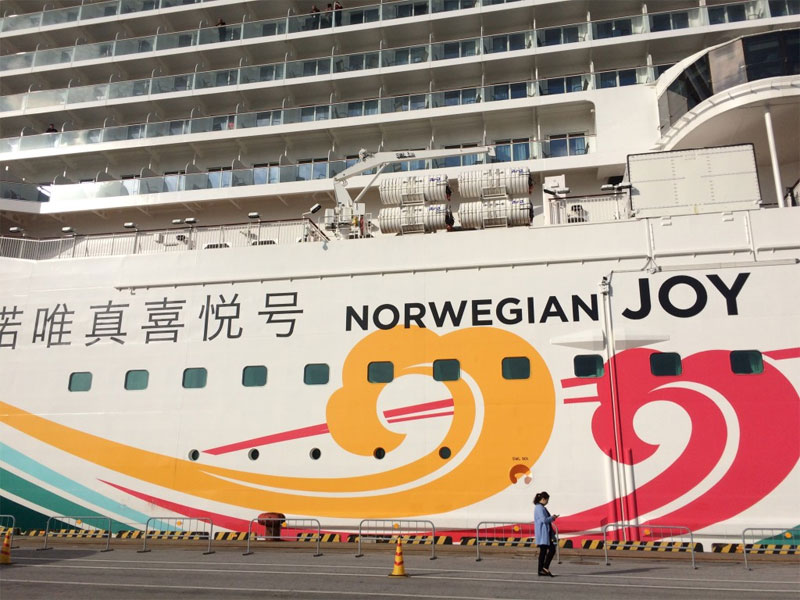American cruise company, Norwegian Cruise Lines, launched a ship especially for the Chinese market during the summer of 2017. The backdrop to this is that China is now the world’s second largest cruise market, and the field is becoming increasingly competitive – so Norwegian Joy stands out for being explicitly Chinese. In addition to having all the signs in Chinese, there are also Chinese restaurants, the buffet is about half if not more Chinese food, films shown on deck during the day are subtitled in Chinese, and large screens air music videos of Chinese pop stars in the evenings. There are KTV rooms and a casino area, plus lots of duty free shopping, a ping pong room, and mahjong sets that you can borrow for free and play anywhere on the ship.