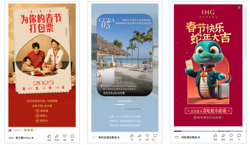 Chinese New Year-themed content also brought the most views for international hotels, especially red envelopes from Hilton (67,429 views) and InterContinental (49,972 views). Promotions and benefits for loyalty program members attracted many WeChat users to posts from InterContinental and Marriott as well.