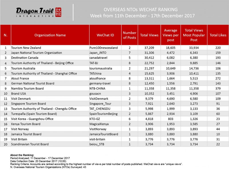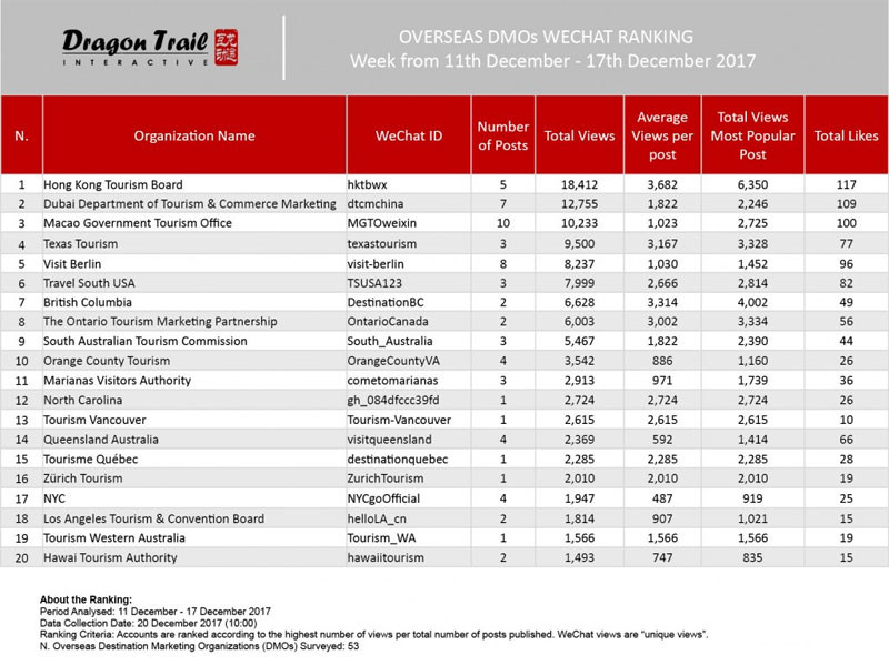 About the data: The data is jointly collected and compiled by Dragon Trail Interactive and Dingla, a B2B travel marketing platform assisting foreign organizations build long term travel trade relationships in China.