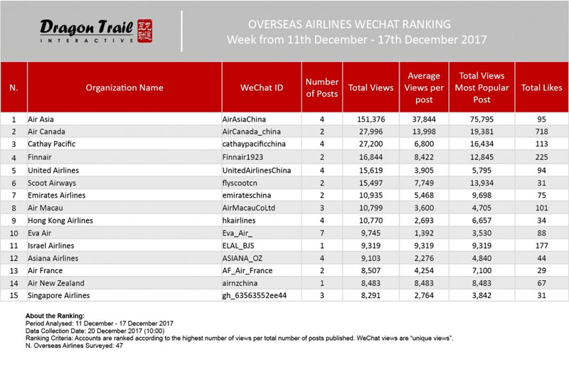 Ranking criteria: Accounts are ranked according to the highest number of views per total number of posts published. WeChat views are “unique views”.