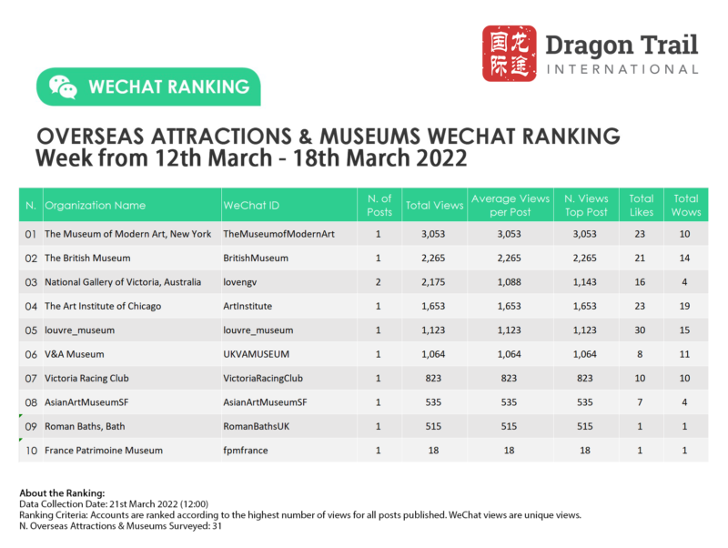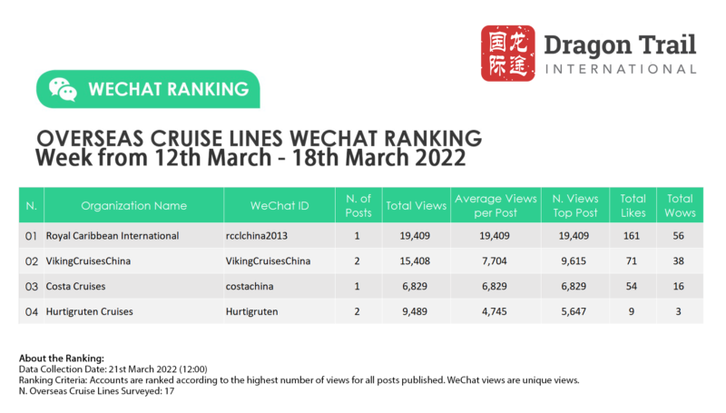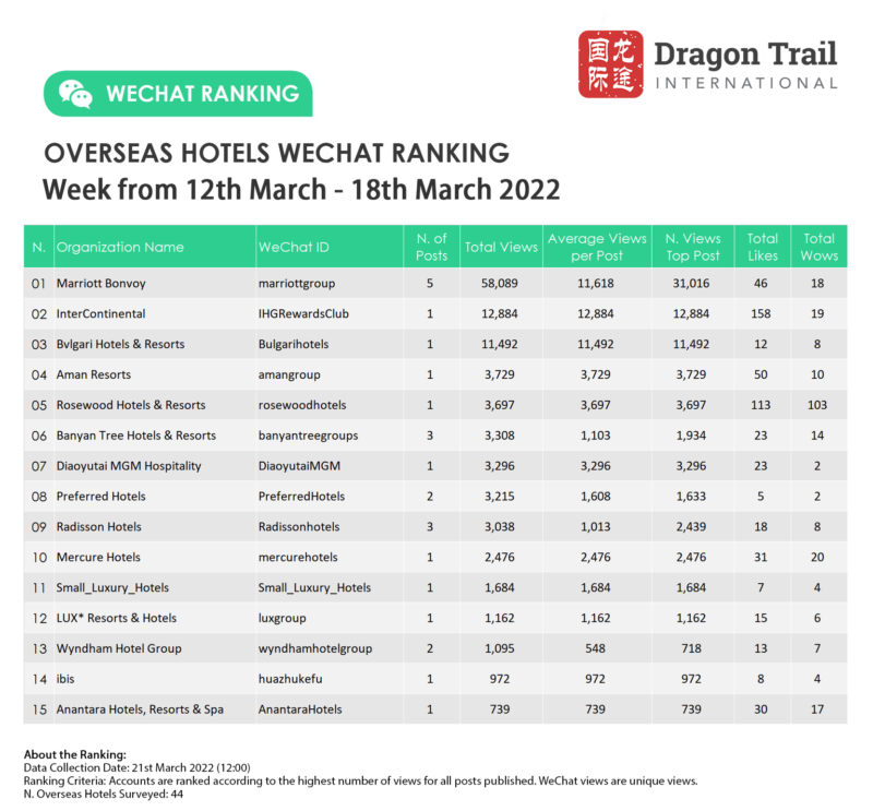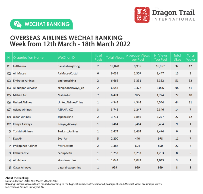 Ranking criteria: Accounts are ranked according to the highest number of views for all posts published. WeChat views are “unique views”.