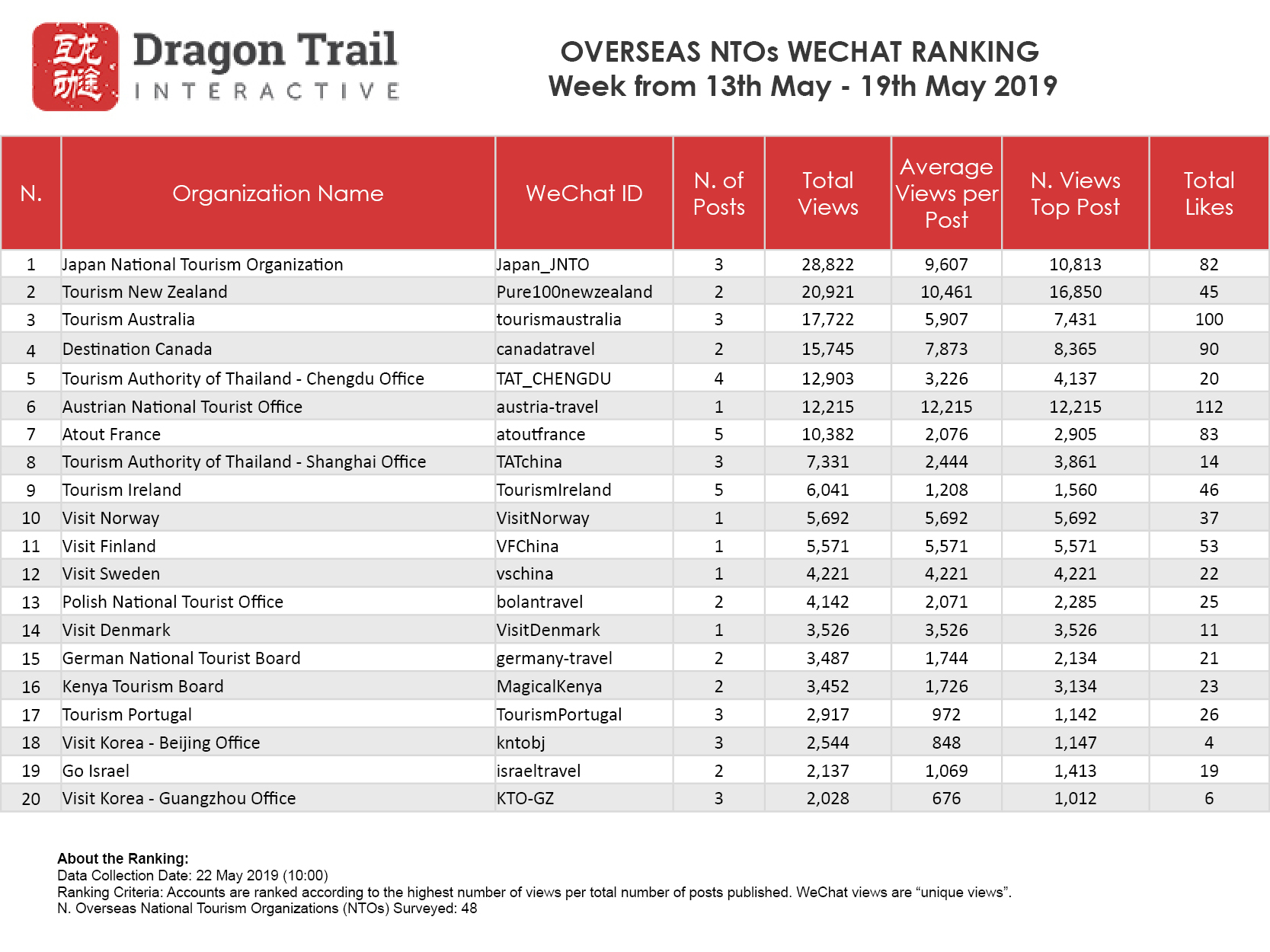 About the data: The data is jointly collected and compiled by Dragon Trail Interactive and Dingla, a B2B travel marketing platform assisting foreign organizations build long term travel trade relationships in China.