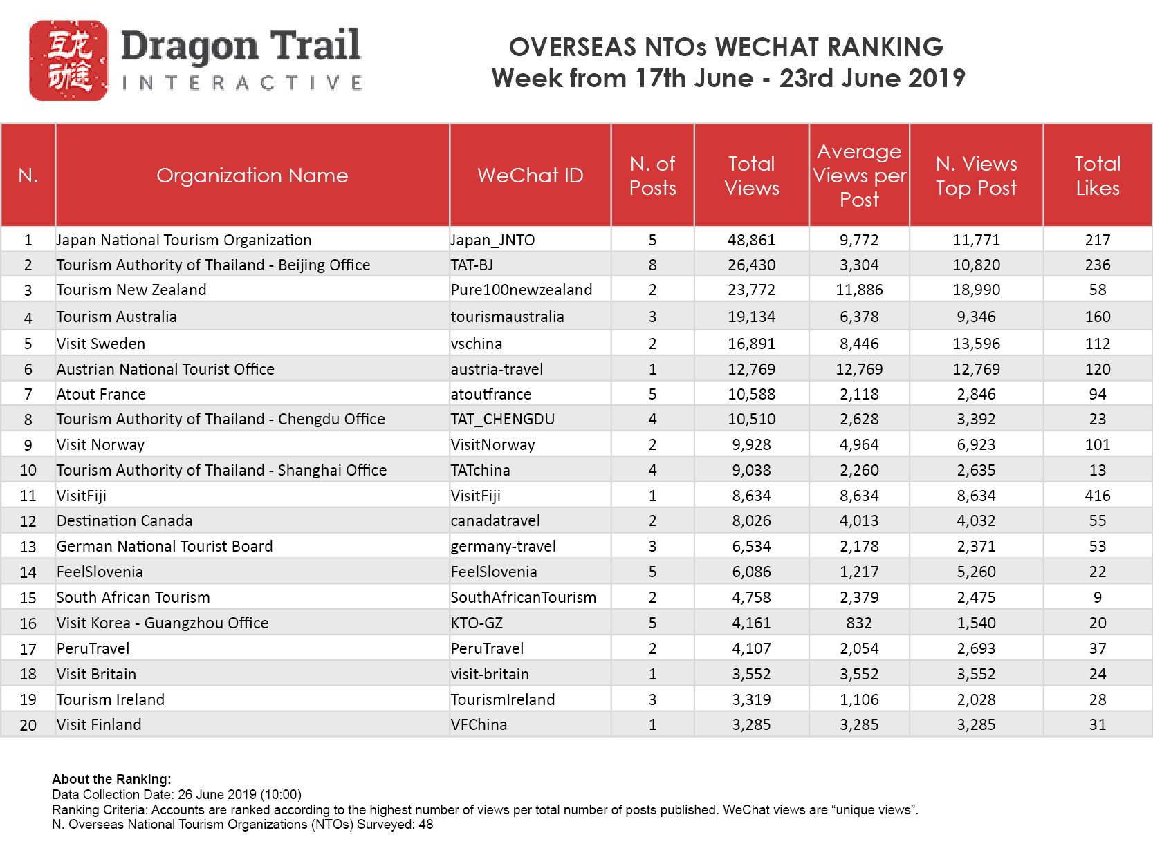 About the data: The data is jointly collected and compiled by Dragon Trail Interactive and Dingla, a B2B travel marketing platform assisting foreign organizations build long term travel trade relationships in China.