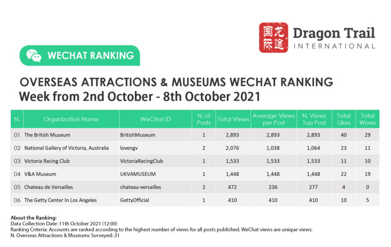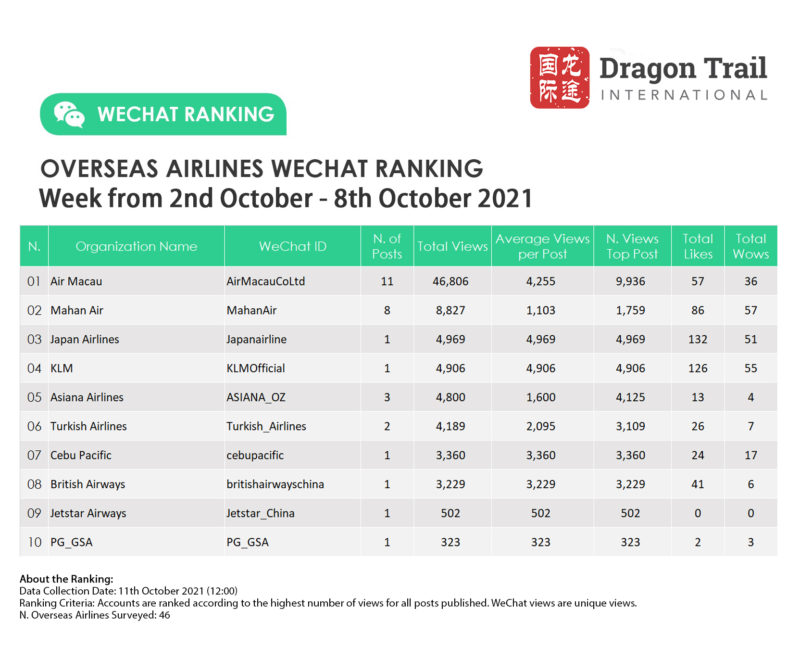 Ranking criteria: Accounts are ranked according to the highest number of views for all posts published. WeChat views are “unique views”.