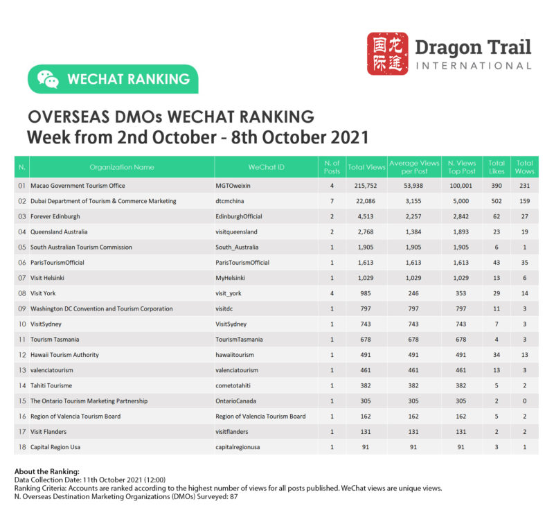 About the data: The data is jointly collected and compiled by Dragon Trail Interactive and Dingla, a B2B travel marketing platform assisting foreign organizations to build long term travel trade relationships in China.