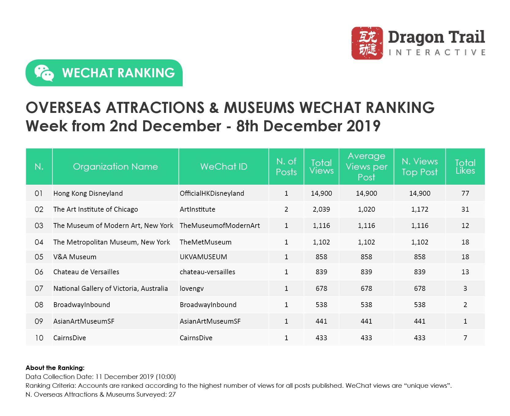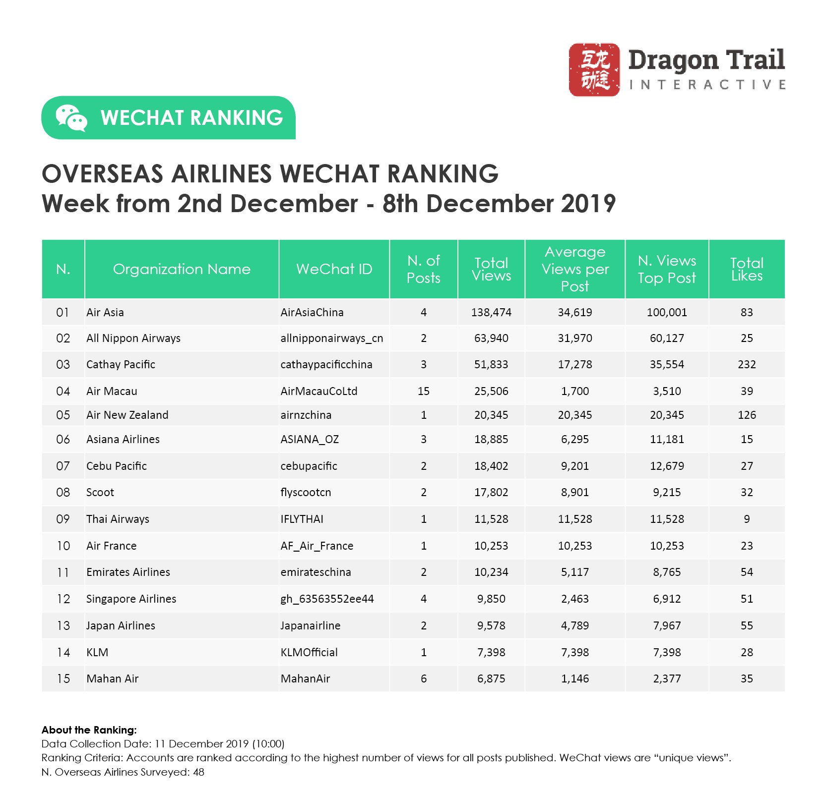 Ranking criteria: Accounts are ranked according to the highest number of views for all posts published. WeChat views are “unique views”.