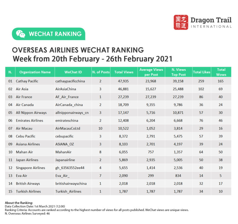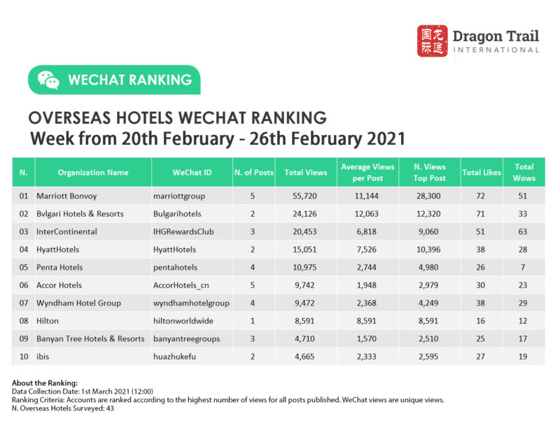Ranking criteria: Accounts are ranked according to the highest number of views for all posts published. WeChat views are “unique views”.