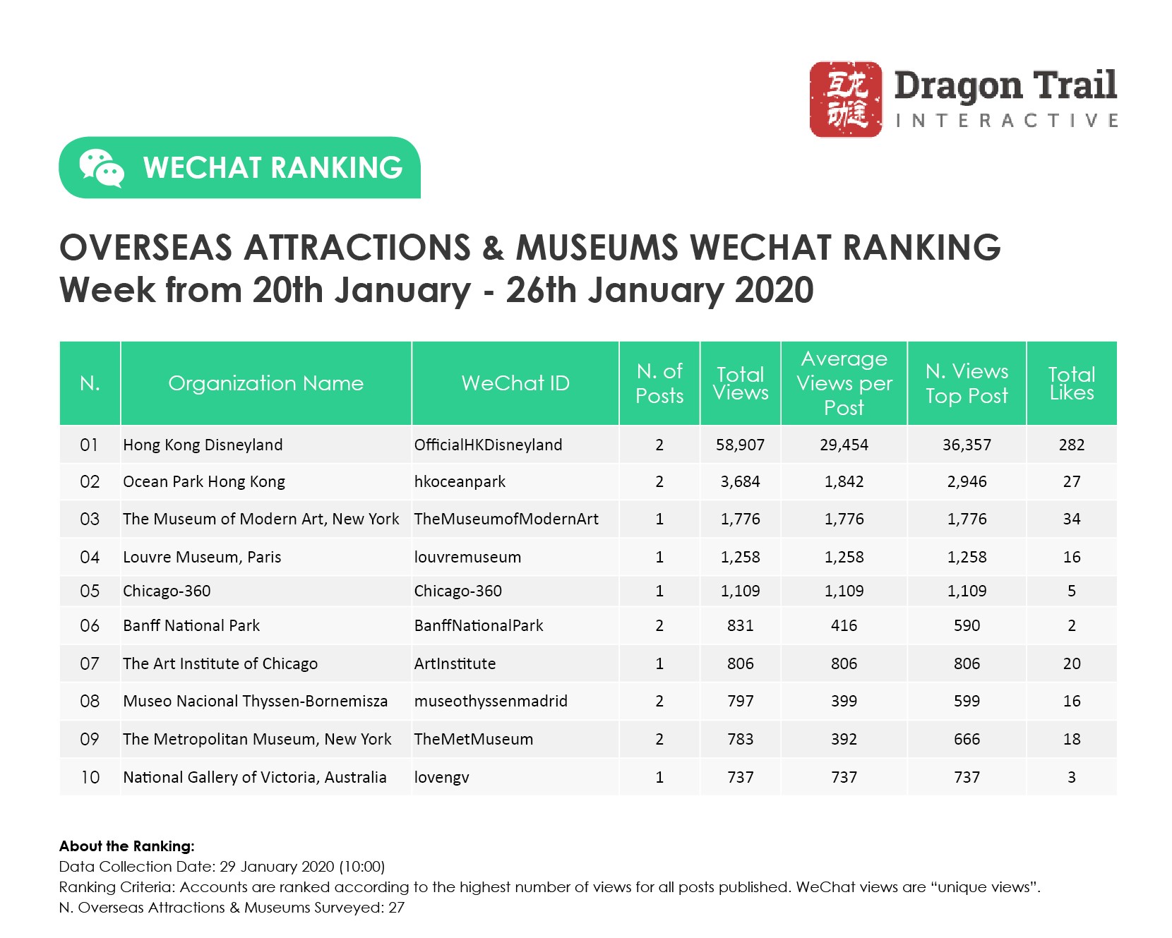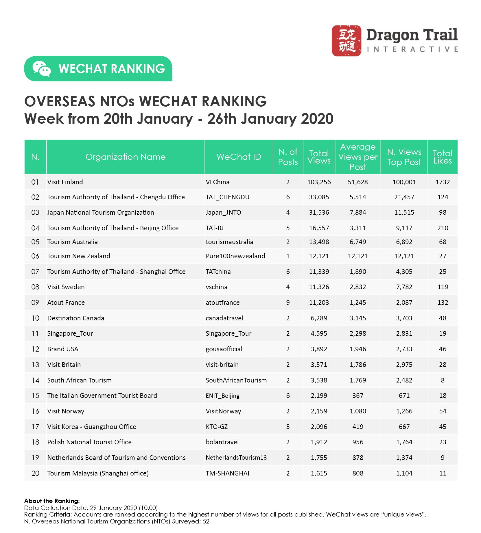 Ranking criteria: Accounts are ranked according to the highest number of views for all posts published. WeChat views are “unique views”.