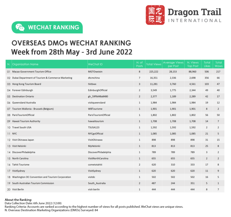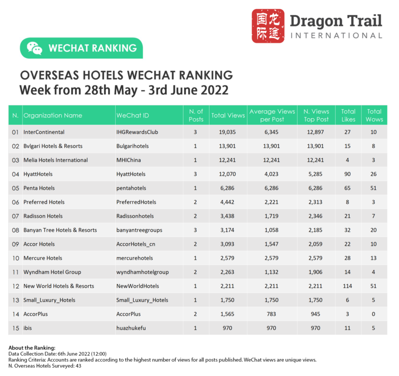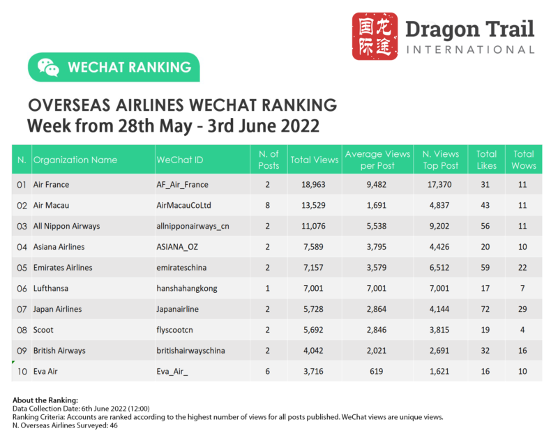 Ranking criteria: Accounts are ranked according to the highest number of views for all posts published. WeChat views are “unique views”.