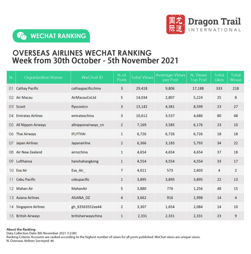 Ranking criteria: Accounts are ranked according to the highest number of views for all posts published. WeChat views are “unique views”.