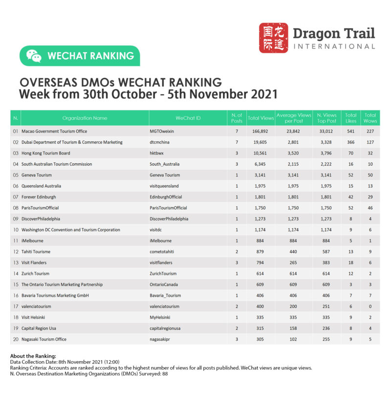 About the data: The data is jointly collected and compiled by Dragon Trail Interactive and Dingla, a B2B travel marketing platform assisting foreign organizations to build long term travel trade relationships in China.