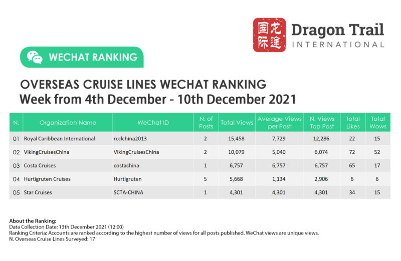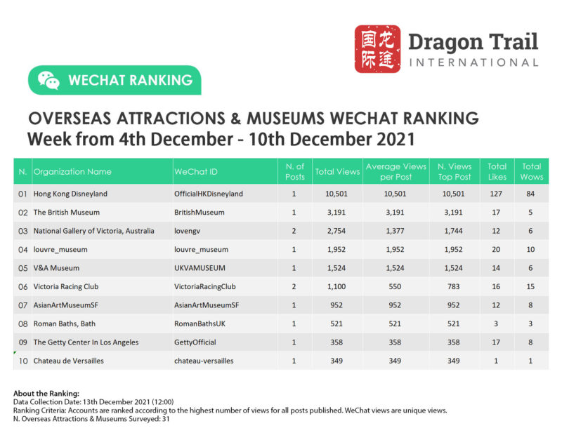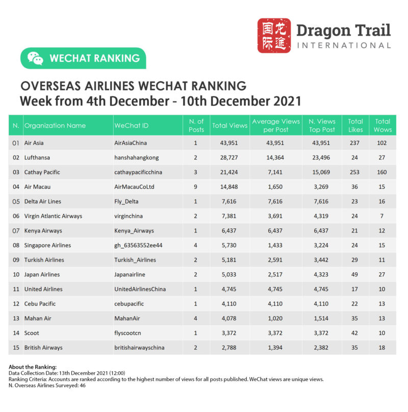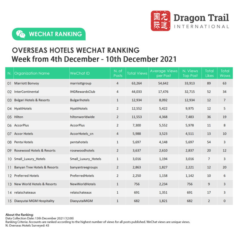 Ranking criteria: Accounts are ranked according to the highest number of views for all posts published. WeChat views are “unique views”.