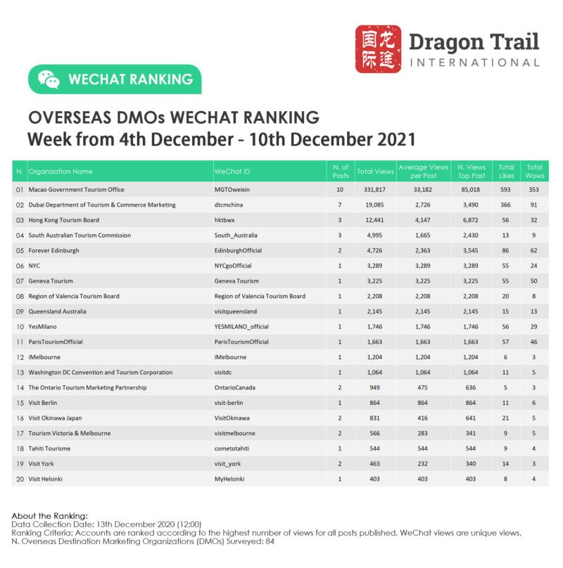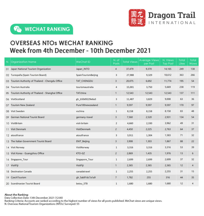 About the data: The data is jointly collected and compiled by Dragon Trail Interactive and Dingla, a B2B travel marketing platform assisting foreign organizations to build long term travel trade relationships in China.