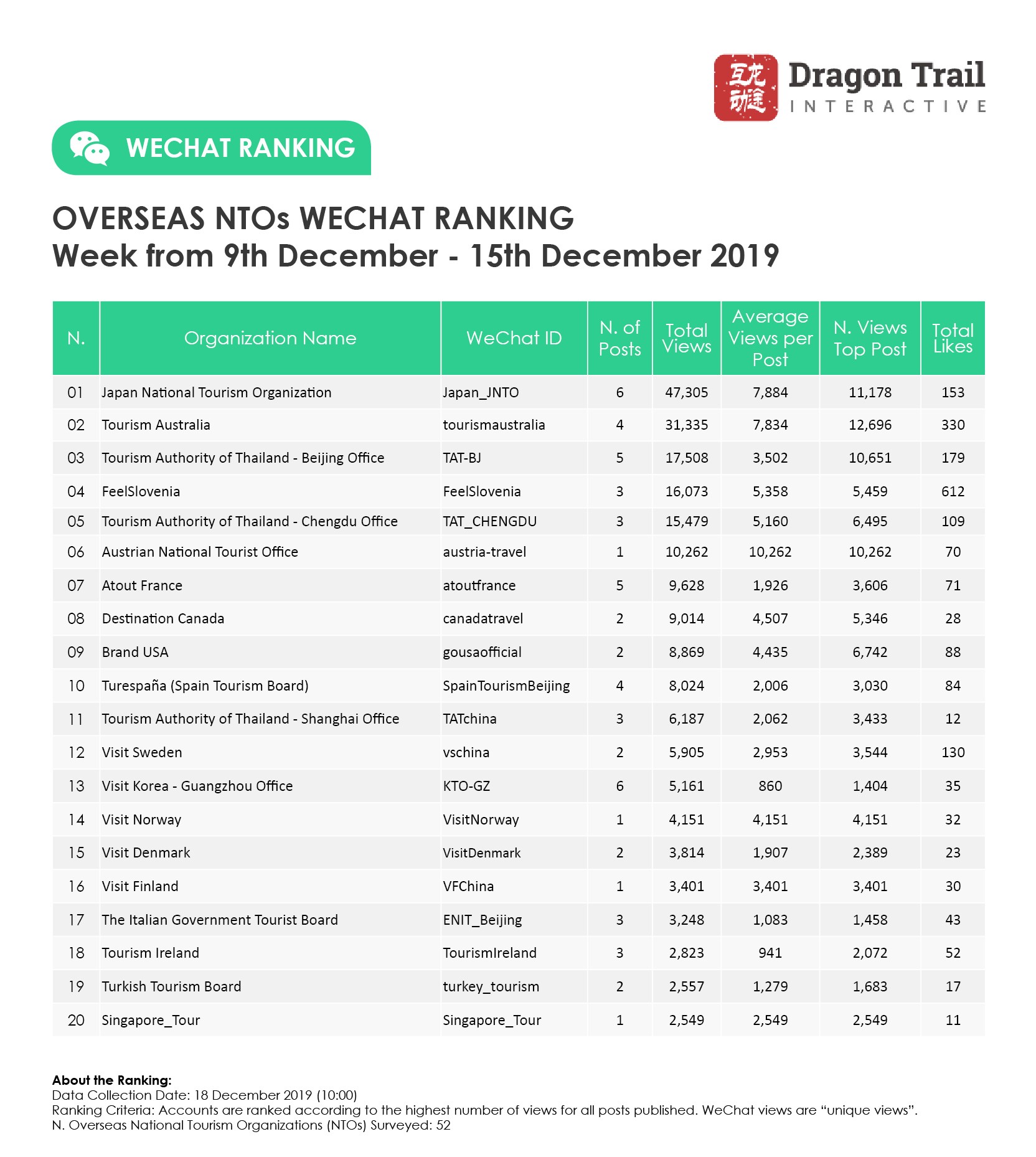 About the data: The data is jointly collected and compiled by Dragon Trail Interactive and Dingla, a B2B travel marketing platform assisting foreign organizations build long term travel trade relationships in China.