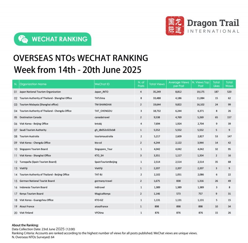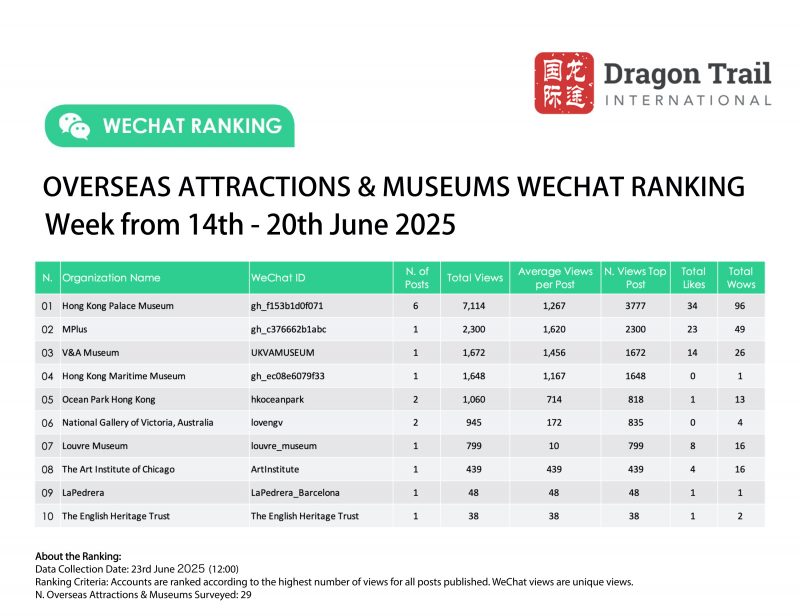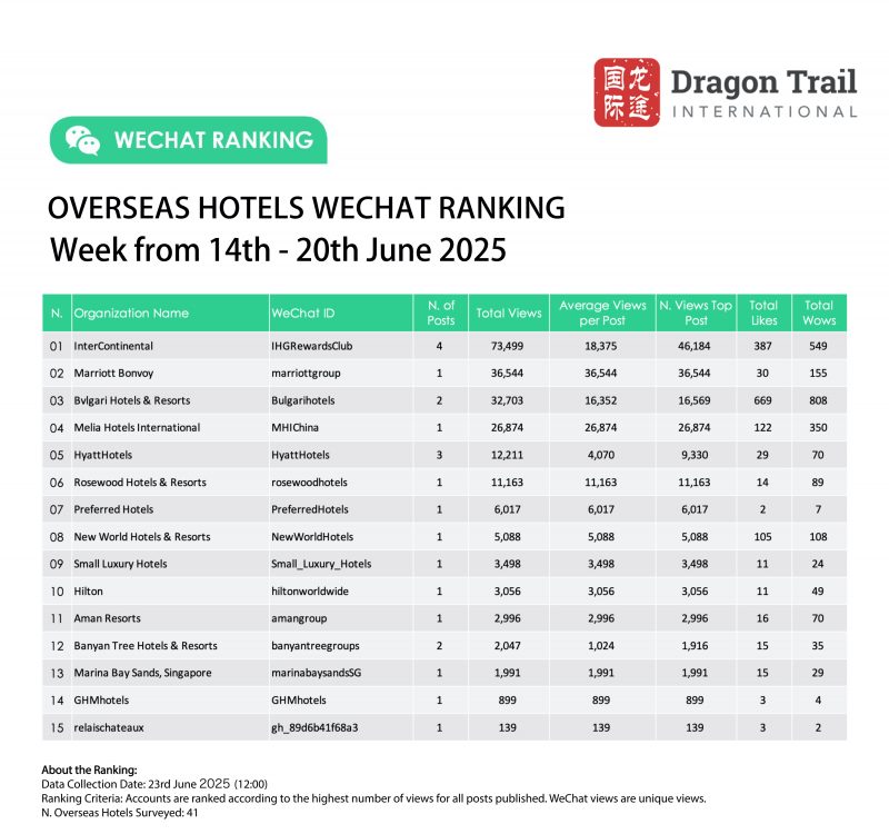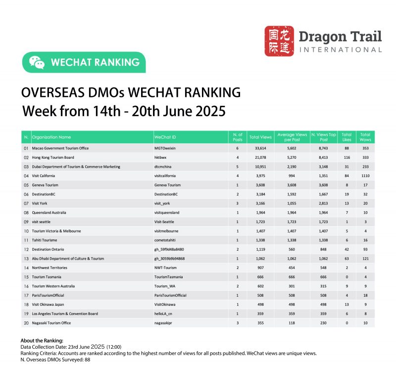 Ranking criteria: Accounts are ranked according to the highest number of views for all posts published. WeChat views are “unique views”.