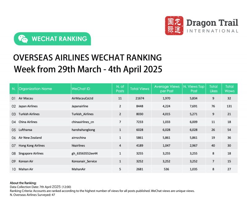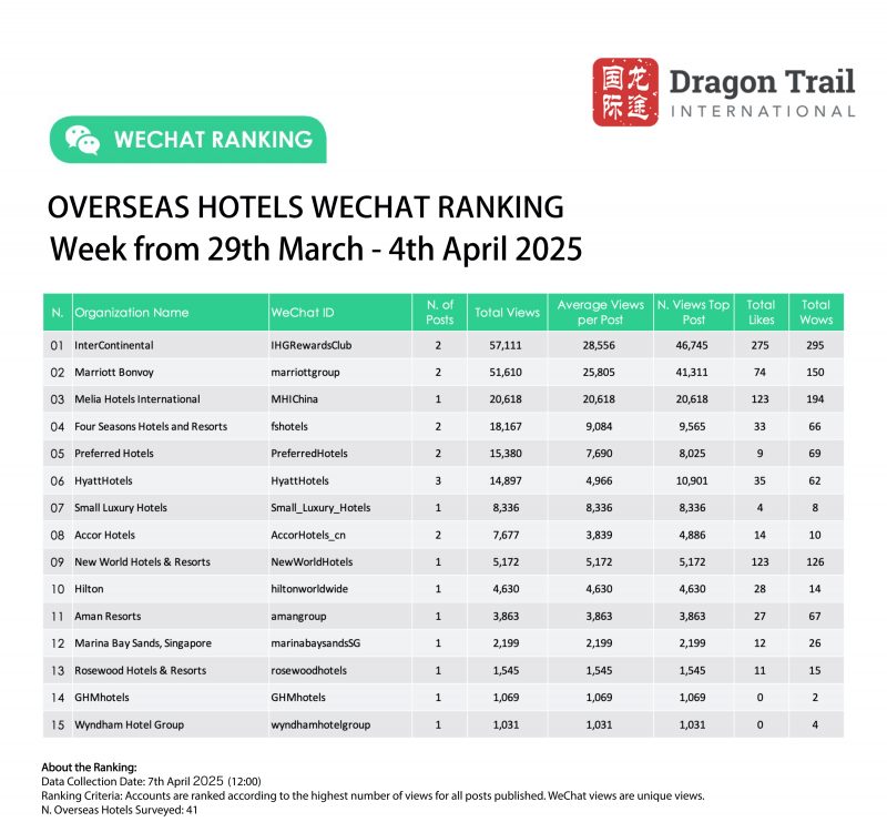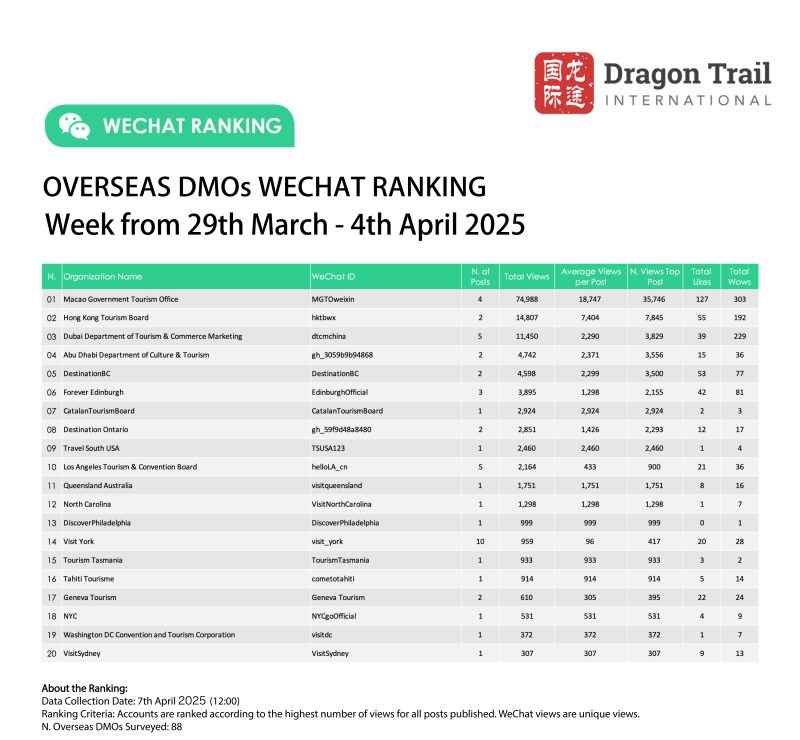 Ranking criteria: Accounts are ranked according to the highest number of views for all posts published. WeChat views are “unique views”.