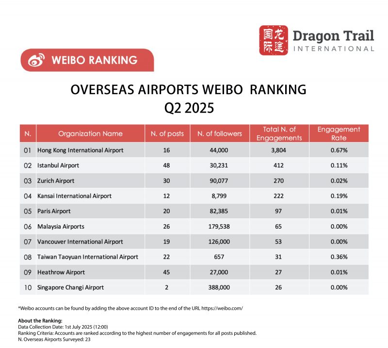 Dragon Trail International’s Weibo Rankings Report tracks and analyzes performance for national tourism organizations (NTOs), destination marketing organizations (DMOs), airlines, airports, cruise lines, museums & attractions, and hotels. Our quarterly Weibo reports build industry benchmarks and uncover best practices in digital marketing in the travel sector.