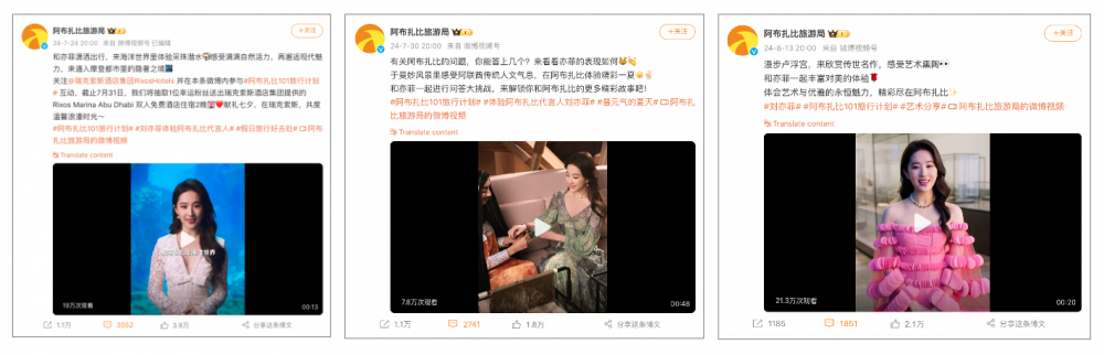 Abu Dhabi’s Weibo posts featuring Yifei Liu