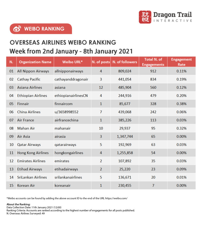 Ranking criteria: Accounts are ranked according to the highest number of engagements for all posts published.