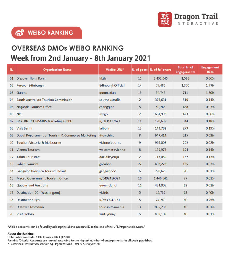 About the data: The data is jointly collected and compiled by Dragon Trail Interactive and Dingla, a B2B travel marketing platform assisting foreign organizations build long term travel trade relationships in China.