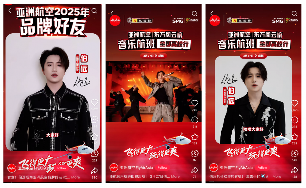 This campaign resonated particularly well with young audiences, as the collaboration with rising talents in the Chinese music industry aligned closely with AirAsia’s youthful and dynamic brand image. Notably, AirAsia’s founder also serves as the CEO of Warner Music Malaysia, enabling strategic partnerships that infuse the brand with a creative and artistic identity. The hashtag #AirAsiasPlaylist became a trending topic on Xiaohongshu, further amplifying the campaign’s impact. These collaborations went beyond traditional brand promotion, enriching and expanding the brand’s cultural relevance and emotional connection with audiences.