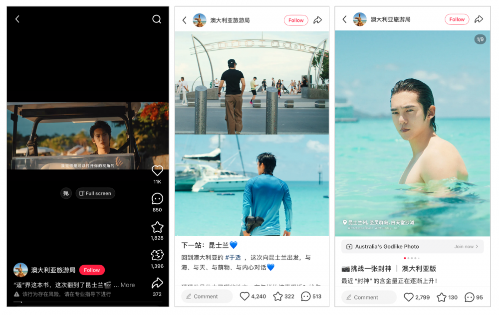Tourism Australia accounted for seven of the top ten most popular posts, with the highest-performing content being a promotional video for Queensland featuring actor Yu Shi. Other widely shared posts focused on Yu Shi’s travel itinerary, highlighting destinations such as the Gold Coast, Great Barrier Reef, Currumbin Wildlife Sanctuary, Burleigh Heads, and Surfers Paradise. These posts encouraged audiences to follow his journey across Australia. Similar to its success on Weibo, Tourism Australia’s collaboration with Yu Shi significantly boosted the destination’s visibility and sparked widespread discussion among his fanbase. The campaign’s dedicated hashtag, #于适的昆士兰假期 (#YuShisQueenslandTrip), garnered 250.5K views and 10.8K notes. Destinations and activities featured in Yu Shi’s itinerary quickly became popular among fans and potential travelers.