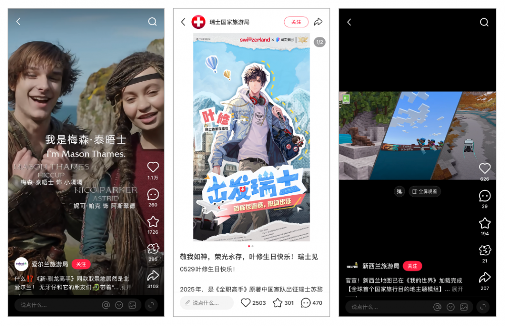 Additionally, the Swiss National Tourist Office, in collaboration with China’s Yuewen Group, launched The King’s Avatar Swiss Expedition campaign. The King’s Avatar (全职高手), a popular Chinese mobile game based on the web novel by Butterfly Blue (蝴蝶蓝), features the protagonist Ye Xiu as the “Swiss Travel Ambassador.” Ye Xiu will guide fans on a month-long journey through Switzerland, from July to August, exploring iconic Swiss locations such as Zurich, Mount Titlis, Lucerne, Jungfrau, and Valais. This type of collaboration between NTOs and Chinese mobile games, often featuring popular game characters, is not unprecedented. Similar partnerships, such as Visit Britain’s collaboration with the Chinese otome visual novel game Mr. Love: Queen’s Choice in Q3 2024, have previously combined virtual experiences with real-world travel promotions to reach broader audiences.