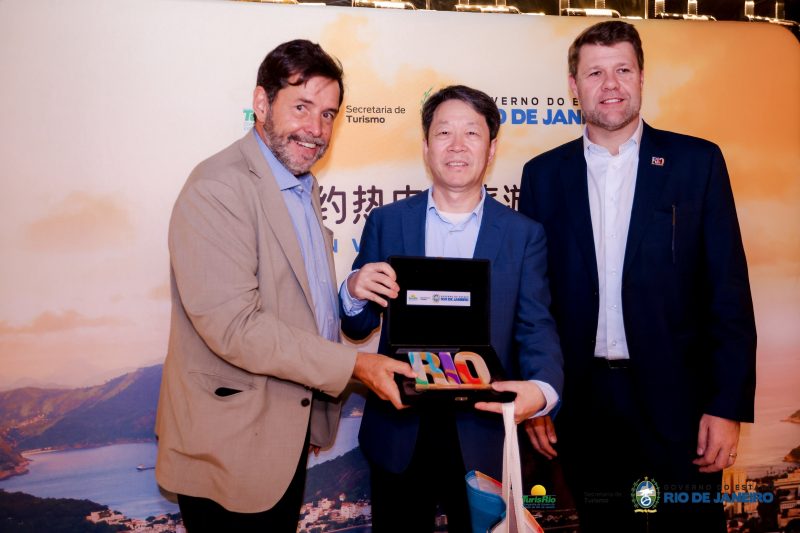 Dragon Trail’s CEO George Cao, with President of TurisRio, Sergio Martins de Almeida (left) and Secretary of Tourism of the State of Rio de Janeiro, Gustavo Tutuca (right)
