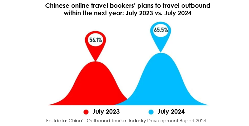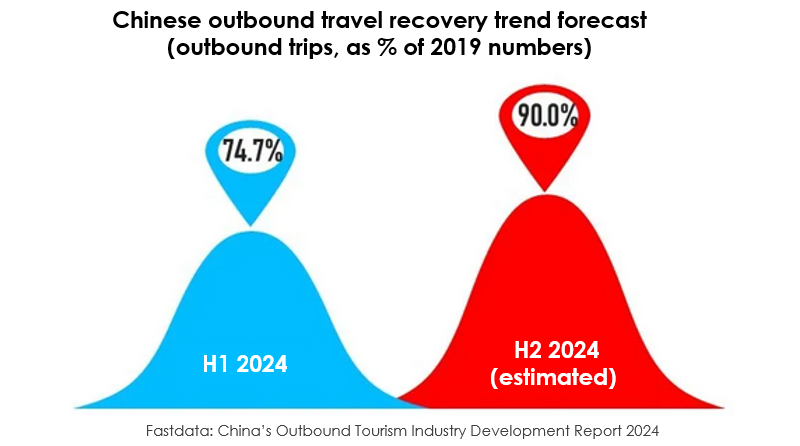 The report’s authors are extremely optimistic about the future of Chinese outbound tourism. Thanks to factors such as relaxed visa policies and the recovery of flight capacity, they estimate a recovery of outbound tourism to around 90% of pre-pandemic levels by the end of 2024, and full recovery/growth by first half of 2025.