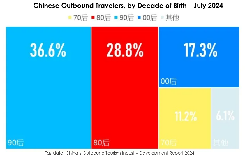 The influence of younger generations on the outbound travel market is undeniable, with post-90s and post-00s generations accounting for more than half. At the same time, the proportion of young people participating in decision making for family outbound trips has grown from 27.3% in H1 2023 to 42.8% in H1 2024.
