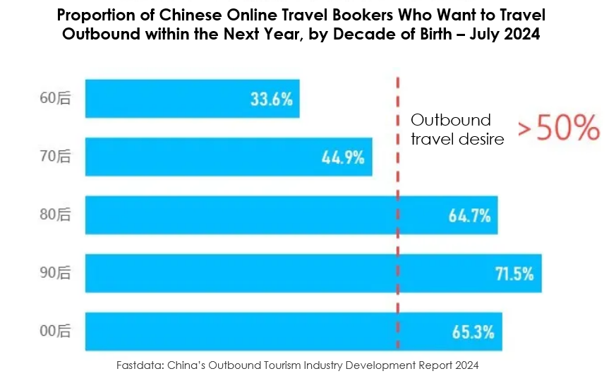 Willingness to travel outbound is especially obvious for younger generations, with 71.5% of users born in the 1990s saying they’re interested in traveling outbound within the year.