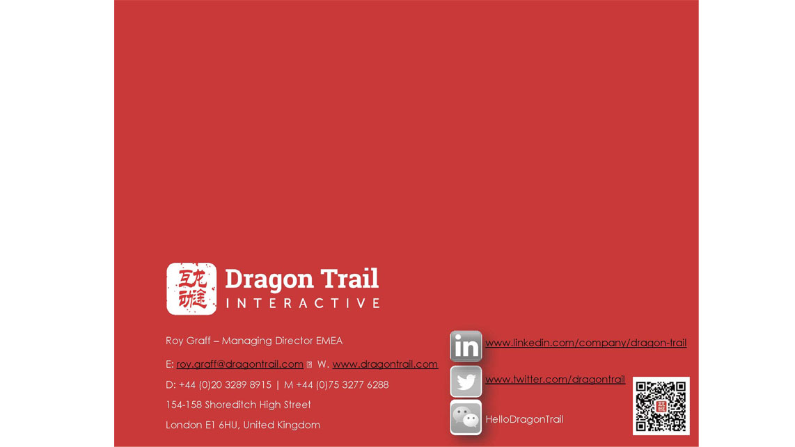 Dragon Trail Interactive is an award-winning travel technology and digital marketing agency helping travel and tourism organizations reach and connect with China’s affluent consumers online.