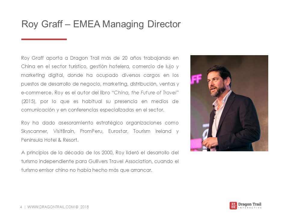Dragon Trail’s Managing Director – EMEA, Roy Graff, and Business Development Manager, Jose Sanchez, presented on Chinese travel trends – including popular destinations, market segmentation and the rise of independent travel. They  also introduced new digital developments in China, with recommendations for both B2B and B2C digital strategies, alongside relevant case studies.